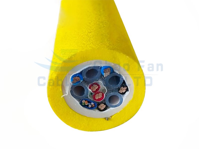 特制的聚氨酯护套密度低,可克服自重而浮于水面,并且具有良好的防水性能,双层护套提高了耐磨防污性能,光纤和气管提供了优质的信号/气体传输,而凯夫拉编织层可以大大加强电缆的抗拉性能,长期使用缆芯间不产生错位、断裂及变形,完全可以满足水下设备长期工作的需求。